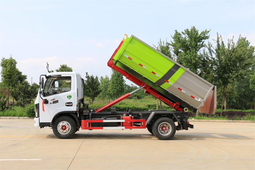 勾臂式垃圾車(車廂可卸式垃圾車)介紹: 車廂可卸式垃圾車又叫拉臂式垃圾車,是一種采用高新設(shè)計(jì)可伸縮的鉤臂,實(shí)現(xiàn)垃圾廂的二次吊裝,自吊上放下,可自行傾倒垃圾的環(huán)衛(wèi)設(shè)備。 拉臂式垃圾車結(jié)構(gòu)簡(jiǎn)單,操作穩(wěn)定方便,裝卸效率高,機(jī)械化程度高,節(jié)省人力。鉤臂垃圾車一車可帶多個(gè)垃圾廂,在裝卸的運(yùn)輸過程中可有效地避免二次污染。 拉臂垃圾車采用高新設(shè)計(jì)可擺動(dòng)的鉤臂,垃圾箱由框架、開啟油缸、滑輪、后門和若干加強(qiáng)框架與鋼板焊接而成。調(diào)換貨廂快捷方便,貨廂上帶蓋(倒垃圾時(shí)可翻開),鉤臂垃圾車?yán)鴰w可選用碳鋼、不銹鋼材質(zhì)、內(nèi)部采取環(huán)氧樹脂防腐處理,改裝部分與原車底盤為可分離式,維修方便且保持了原車的機(jī)動(dòng)性及行駛性能。