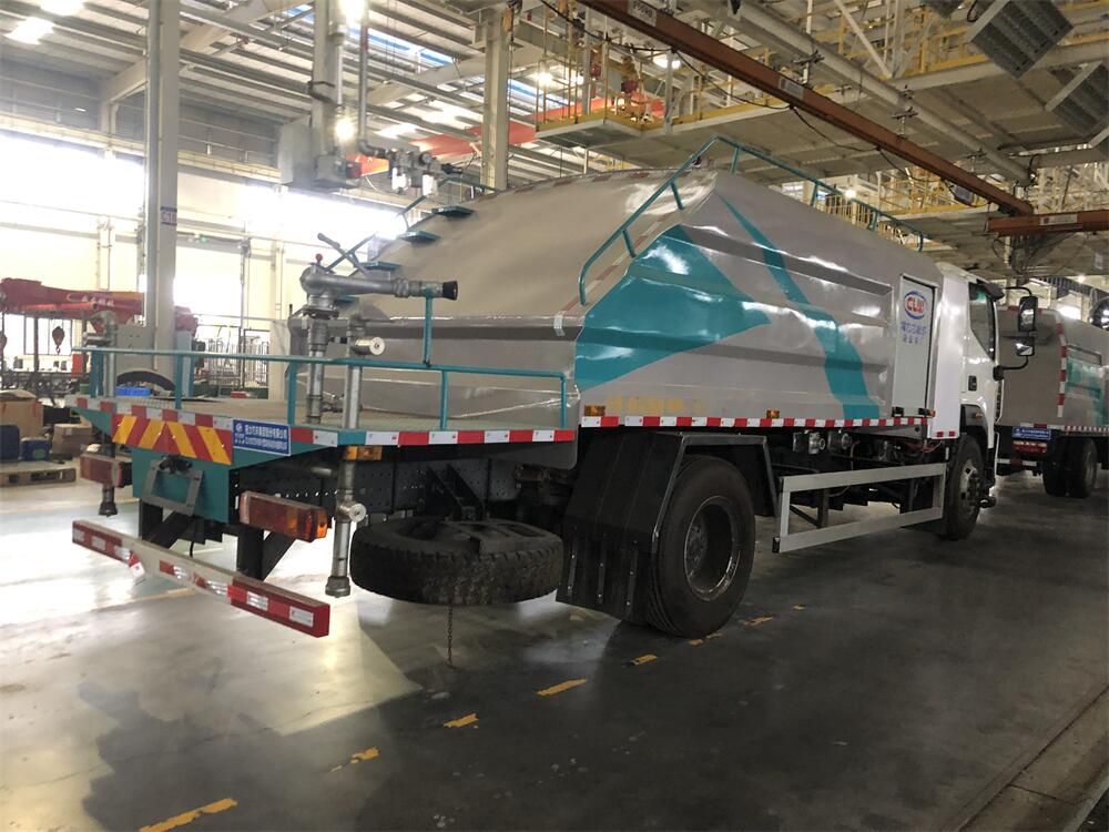 上裝配置:罐體容積為 8立方,選配風(fēng)送式霧炮機組射程30米、40米、50米、60米、80米、100米、120米霧炮,罐體鋼板為4mm碳鋼Q235材質(zhì),罐內(nèi)隔板具有防波作用,以減輕汽車行駛時罐體液體沖擊,罐體及整車外形尺寸按照公告。帶大功率專用灑水泵,泵可自吸自排,整車前沖、后灑、側(cè)噴、帶65消防接口,后平臺配CLW-50、CLW-60、CLW-80、CLW-100、CLW-120型風(fēng)送式霧炮機組;罐體前封頭配大功率柴油發(fā)電機組;前封頭帶水位計,后平臺主管路帶1寸澆花接口,后爬梯。帶兩根輸水管及陰陽端。罐體顏色:銀/灰/綠,罐體兩側(cè)噴“多功能抑塵車”字樣,貼反光標(biāo)示。