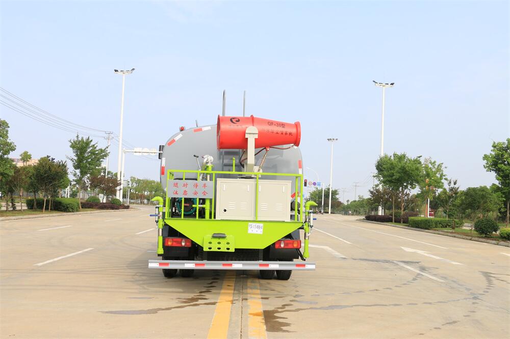 上裝配置:罐體容積 12立方,風送式霧炮機組30米,40米選擇,罐體采用國標Q235碳鋼材質,罐體厚度4MM,前后封頭5MM加厚型,罐體內雙層隔板具有防波蕩作用,以減輕汽車行駛時罐內液體沖擊;灑水車整車及外形尺寸嚴格按照**機動車公告制作而成;裝配大功率專用灑水泵,前沖、后灑、側噴、后平臺帶綠化灑水炮,灑水炮可全方位旋轉,可連續調成直沖狀、大雨、小雨、毛毛雨;配消防接口,自流閥,濾網,帶自吸自排功能。前封頭帶水位計,后平臺主管路帶1寸澆花接口,后爬梯,帶1個消防接頭,帶1個自流閥,1個過濾裝置,其余標配。