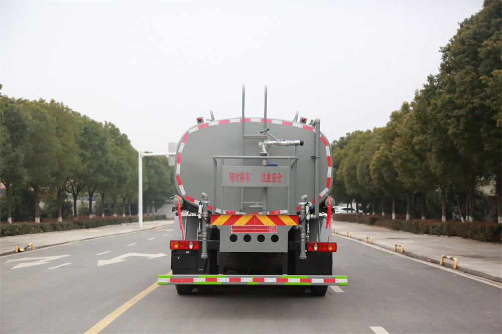 灑水車前裝有鴨形噴嘴或圓頭沖嘴,后面裝有圓柱開灑水噴嘴或蓮蓬頭噴嘴,后部有一工作平臺,裝配有水炮。后部還可裝8個(gè)噴嘴(選裝)。